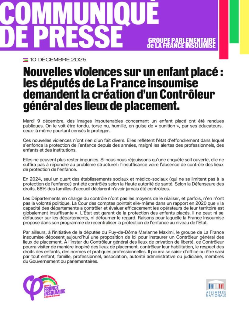 Nouvelles violences sur un enfant placé: les députés de La France insoumise demandent la création d’un Contrôleur général des lieux de placement